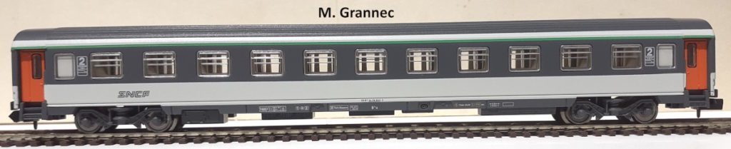 16074E : Remorque d’autorail XR 8274, dépôt de Dijon, modernisée, bleu et gris, SNCF, Ep IV-V, avec éclairage intérieur et feux de fin de convoi, interface NEXT18